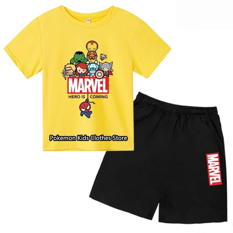 Tenue d'été pour enfants : T-shirt et short Marvel Super-héros.