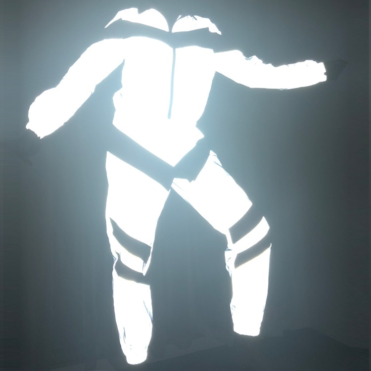 Un ensemble réfléchissant intéressant avec des bandes noires, c'est le choix parfait pour courir le soir par faible visibilité. La veste est zippée et ornée d'un pendentif décoratif.