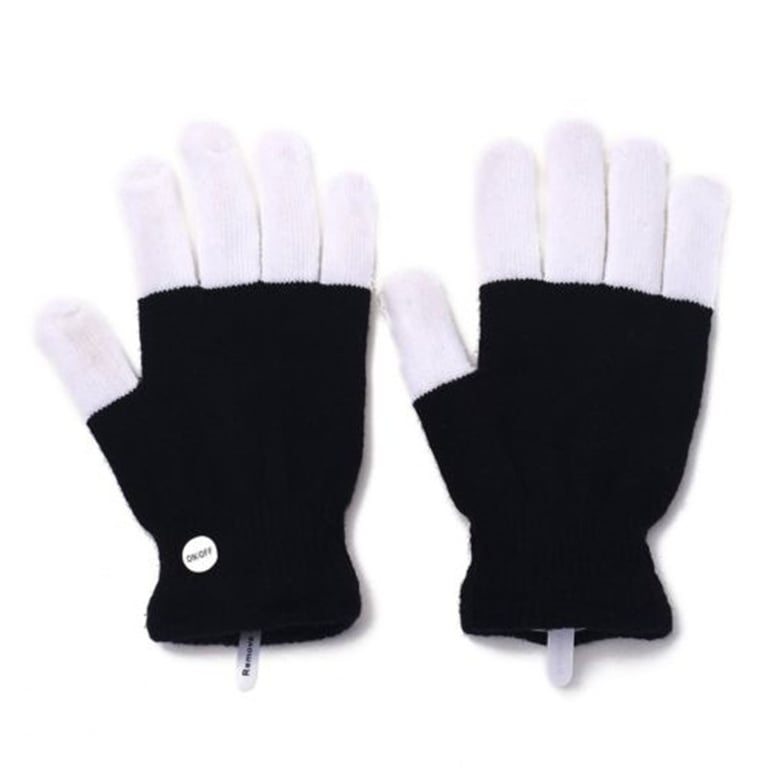 Des gants stylés qui mettront de l'ambiance à chaque fête ! Des doigts blancs avec de petites lumières colorées.
