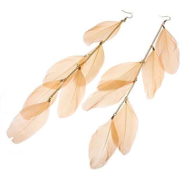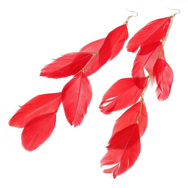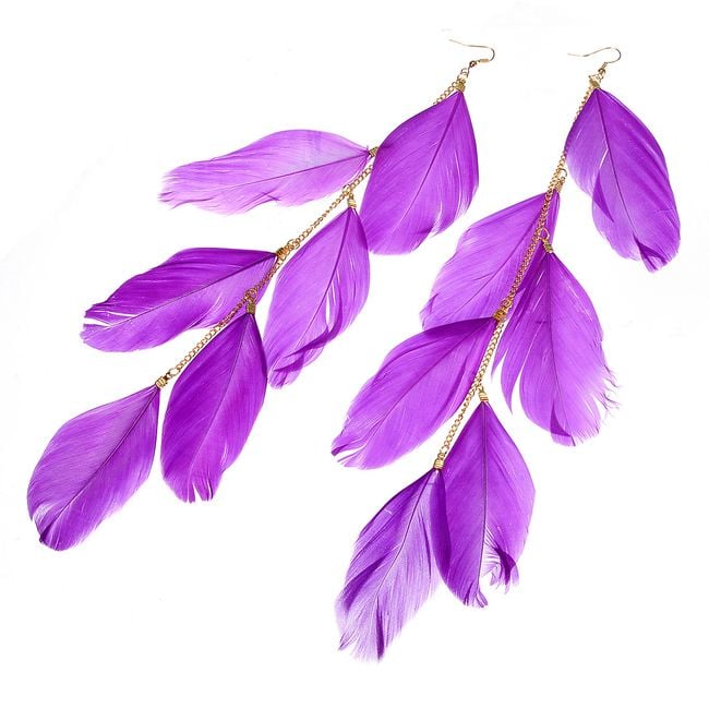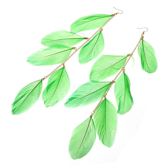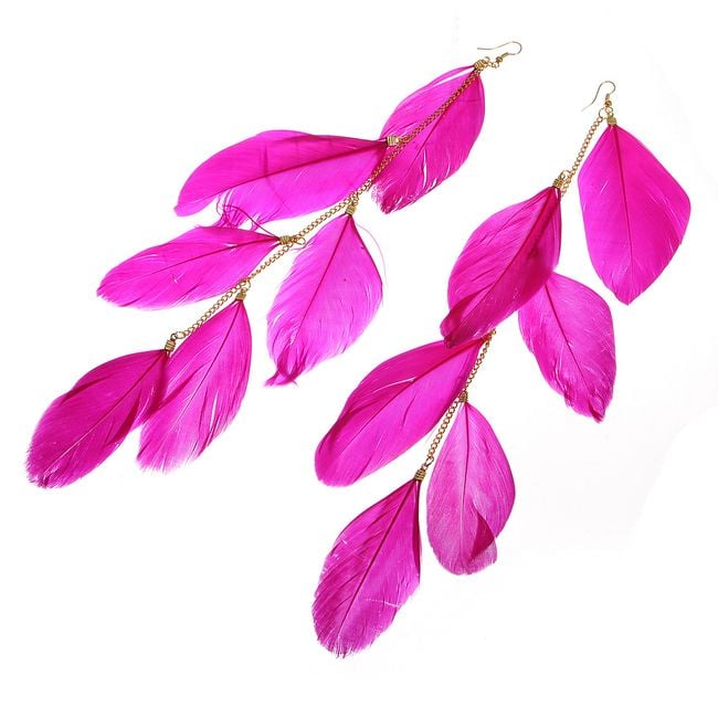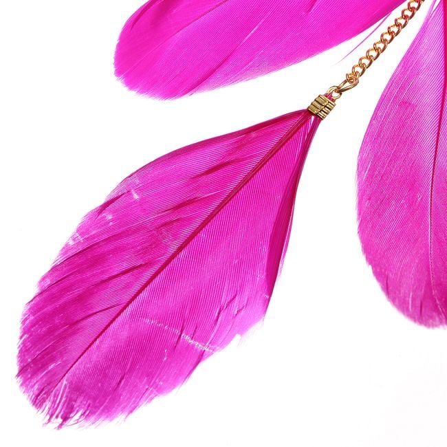 Les longues boucles d'oreilles se composent d'une chaîne et de plumes colorées. Elles se démarquent particulièrement en combinaison avec des coiffures hautement coiffées et des décolletés profonds.