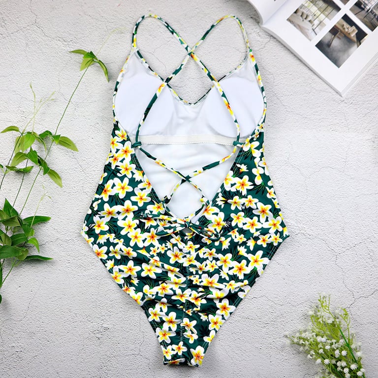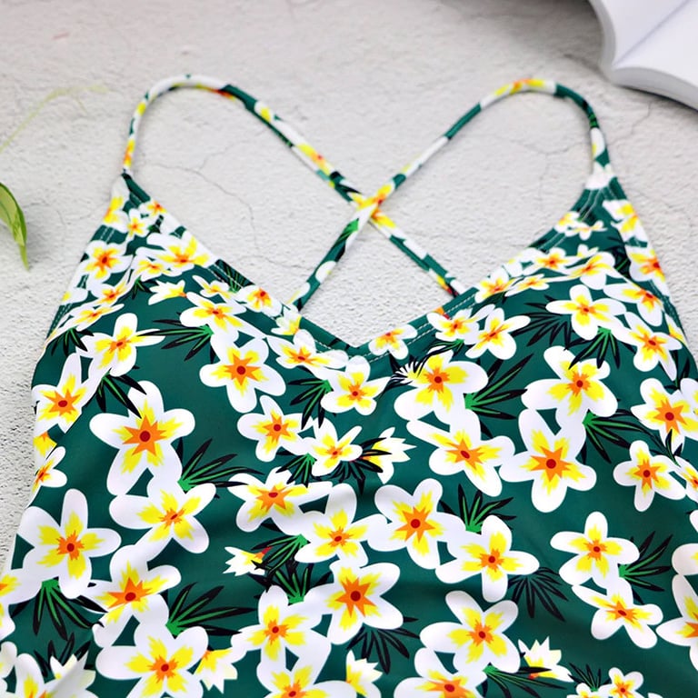 Maillot de bain une pièce pour femme. Découpe haute. Avec des bretelles fines. Imprimé à motif floral. Disponible en deux variantes de couleur.