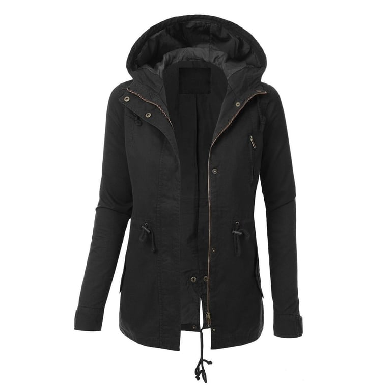 Manteau long élégant pour femme, doté d'une capuche, de poches, d'un cordon de serrage et d'une fermeture éclair. Un choix idéal pour l'automne ou l'hiver.