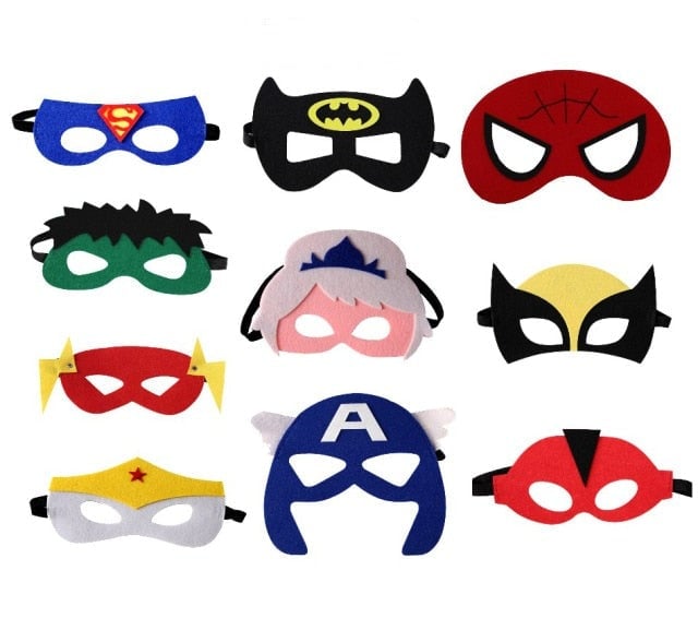 Mélange de masques pour enfants du monde des comics pour le visage en plusieurs variantes.