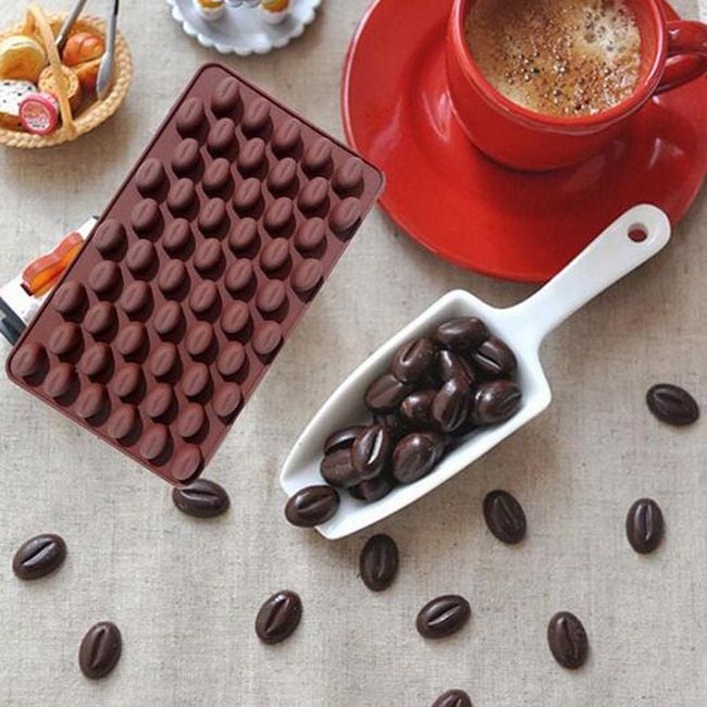 Un moule en silicone en forme de grains de café servira à décorer des gâteaux.