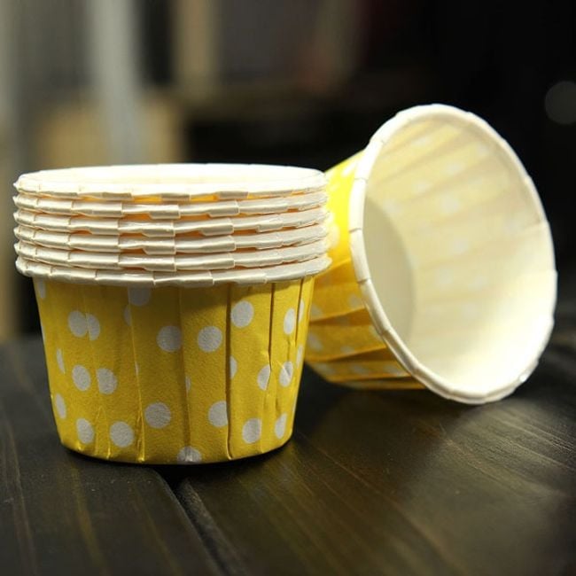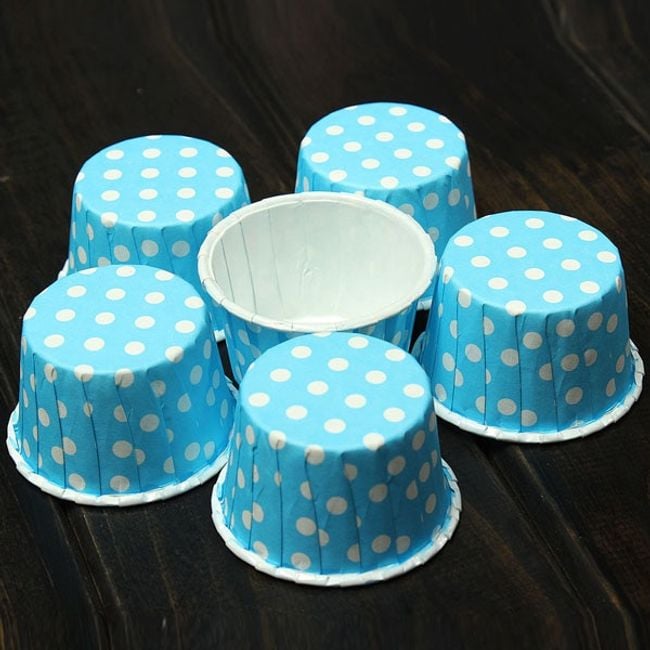 Jolis moules à cupcakes et muffins à pois disponibles en 4 variantes de couleurs.