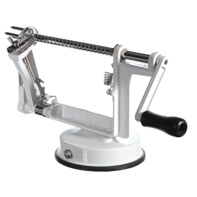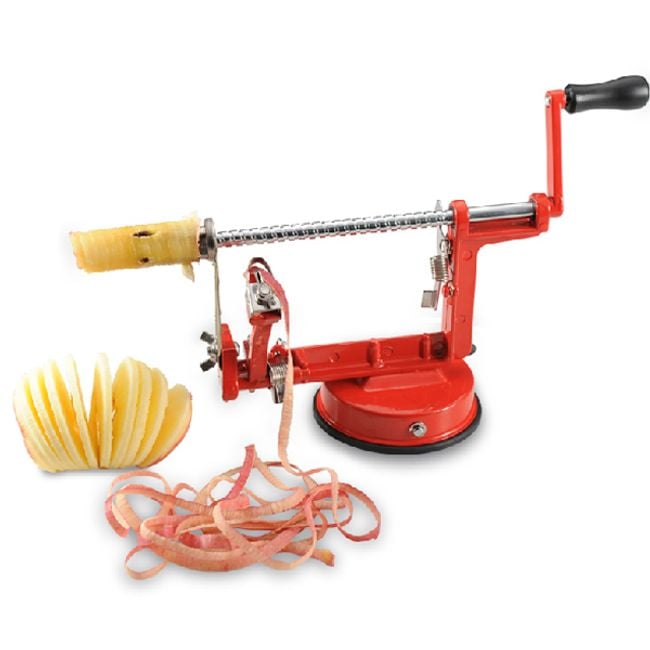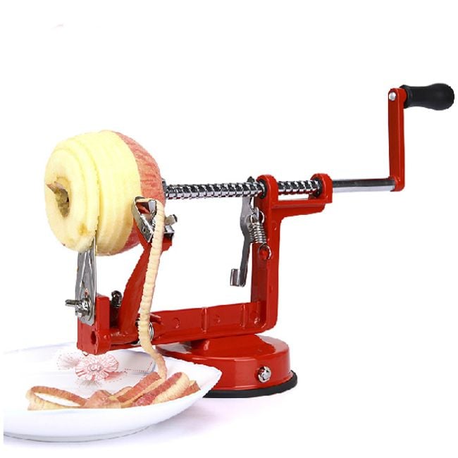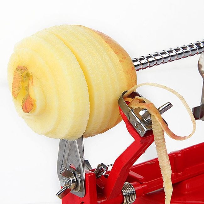 Ce pèle-pomme multifonction vous fera gagner beaucoup de temps à la maison. Il suffit de piquer la pomme sur la vis et de tourner la manivelle – la pomme est pelée, débarrassée de son trognon et découpée en spirale. Ces trois éléments peuvent être combinés de différentes manières. Vous verrez que vous aurez du succès à la maison. Vos enfants seront également beaucoup plus enclins à manger des fruits.