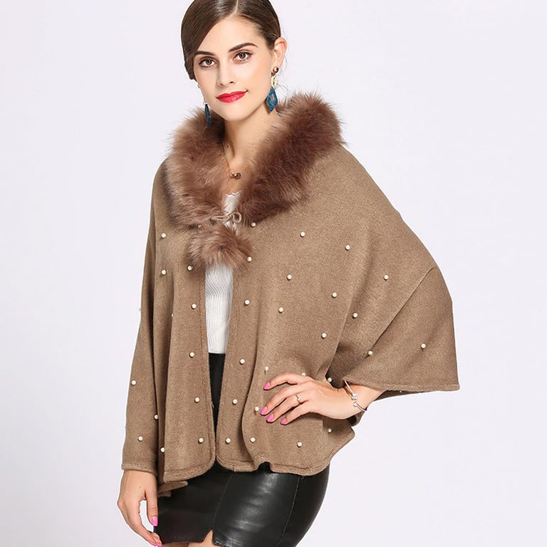 Poncho élégant pour femmes, qui s'adapte parfaitement et a une coupe et des ornements stylés. Ajoutez ce nouvel article à votre garde-robe d'automne !