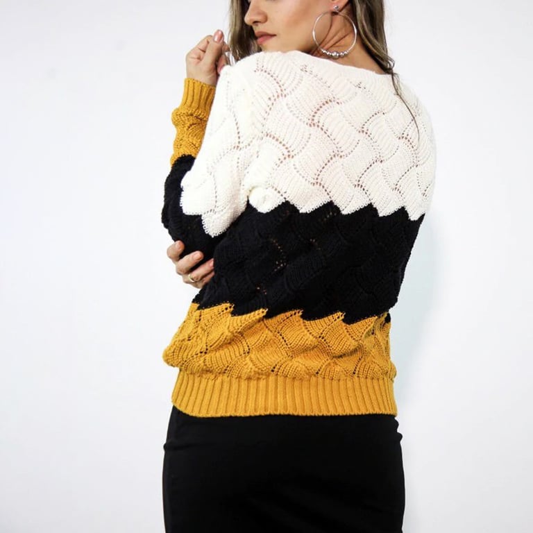 Pull en tricot avec un motif attrayant. La coupe classique convient à une tenue quotidienne.