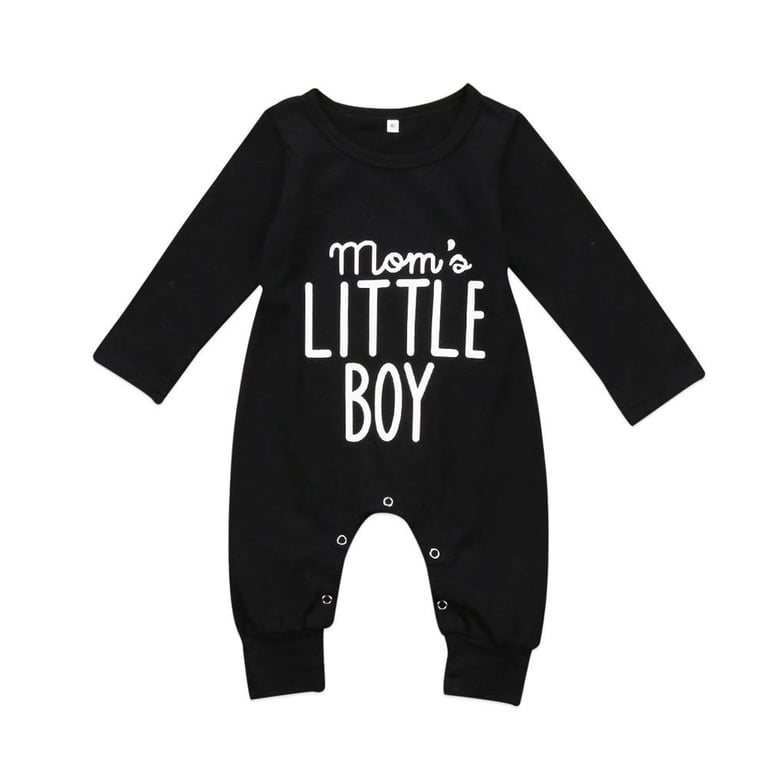 Pyjama stylé pour nouveau-nés avec l'inscription anglaise “petit garçon de maman”. Le pyjama est très confortable et de qualité, et votre bébé y dormira paisiblement.