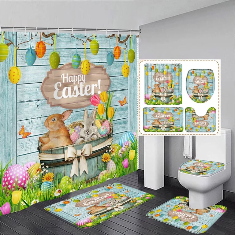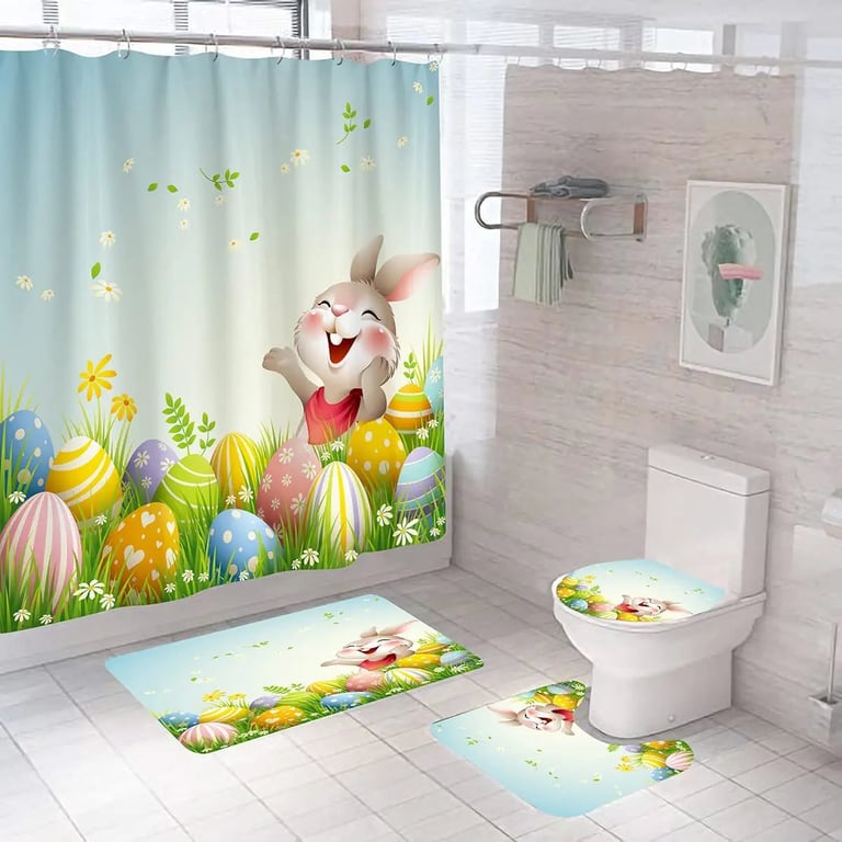Rideau de douche de Pâques et tapis.
