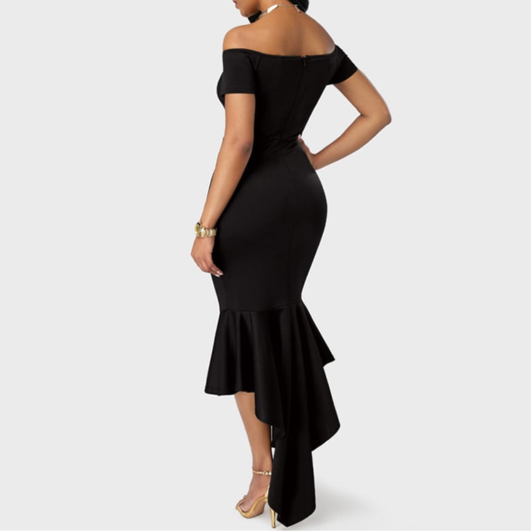 Robe élégante avec une jupe asymétrique et un décolleté sexy. Convient pour des événements sociaux.