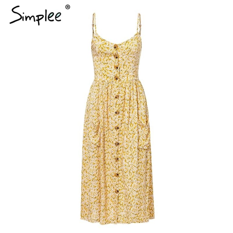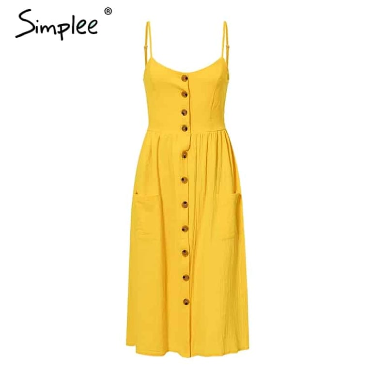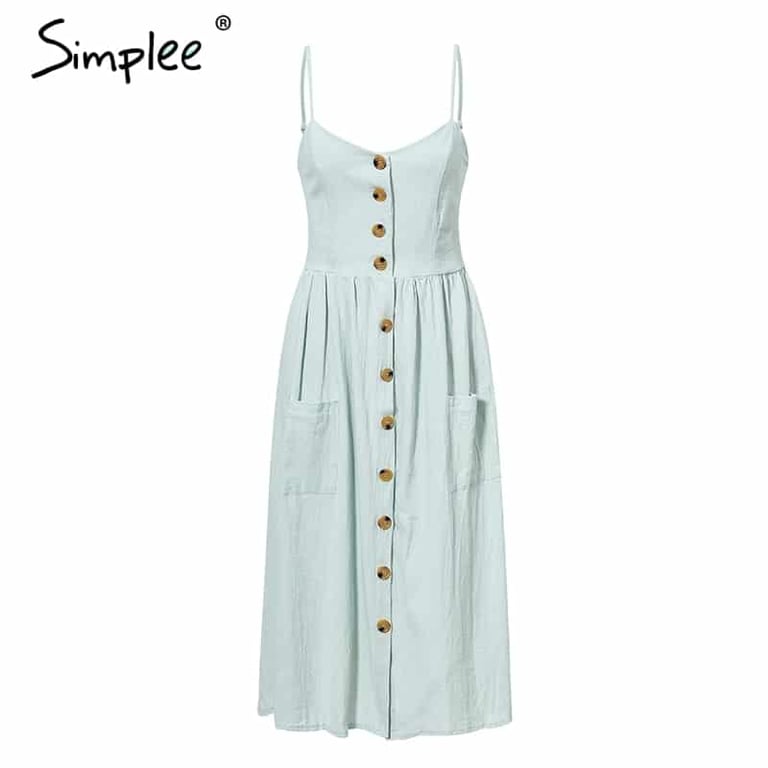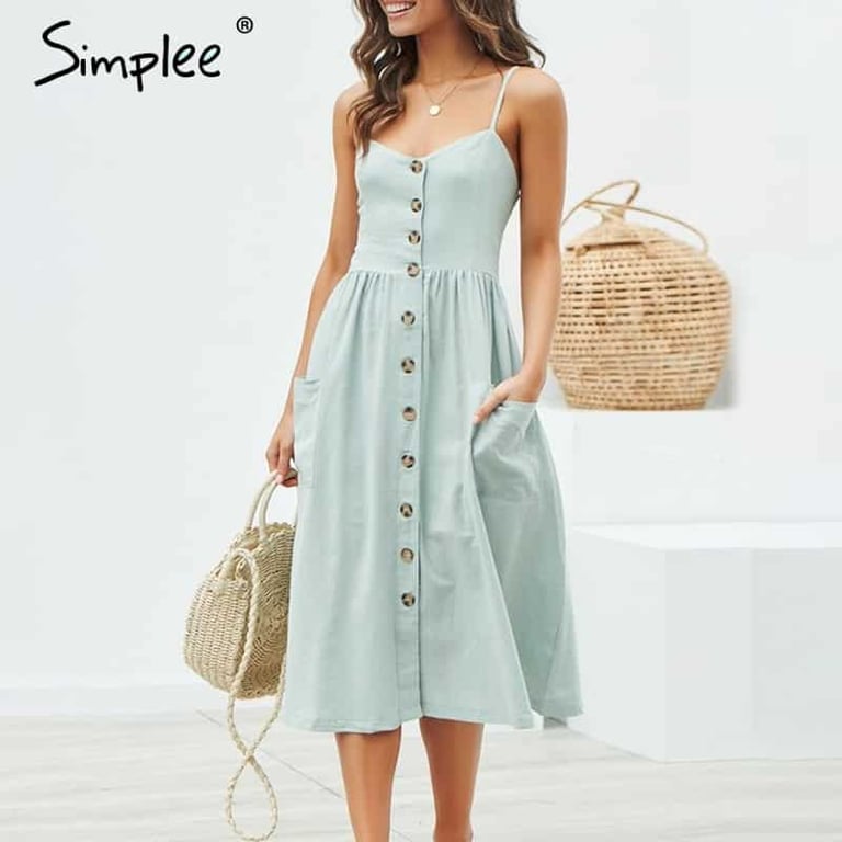 Robe d'été à boutons pour femmes avec poches et bretelles Simplee