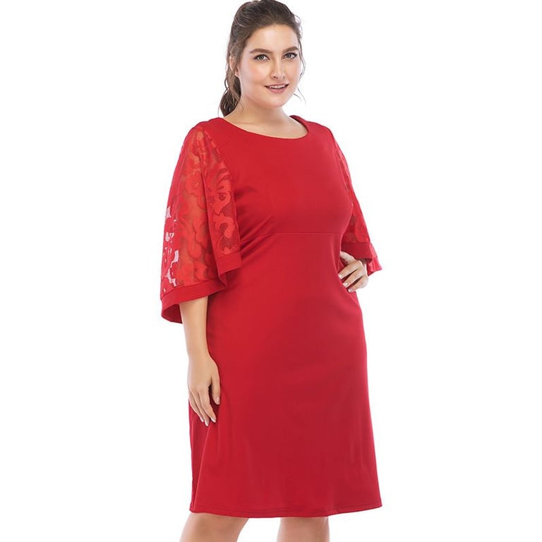 Robe de soirée pour femmes en grande taille, coupe ample avec décolleté rond et manches ornées. Disponible en trois coloris.
