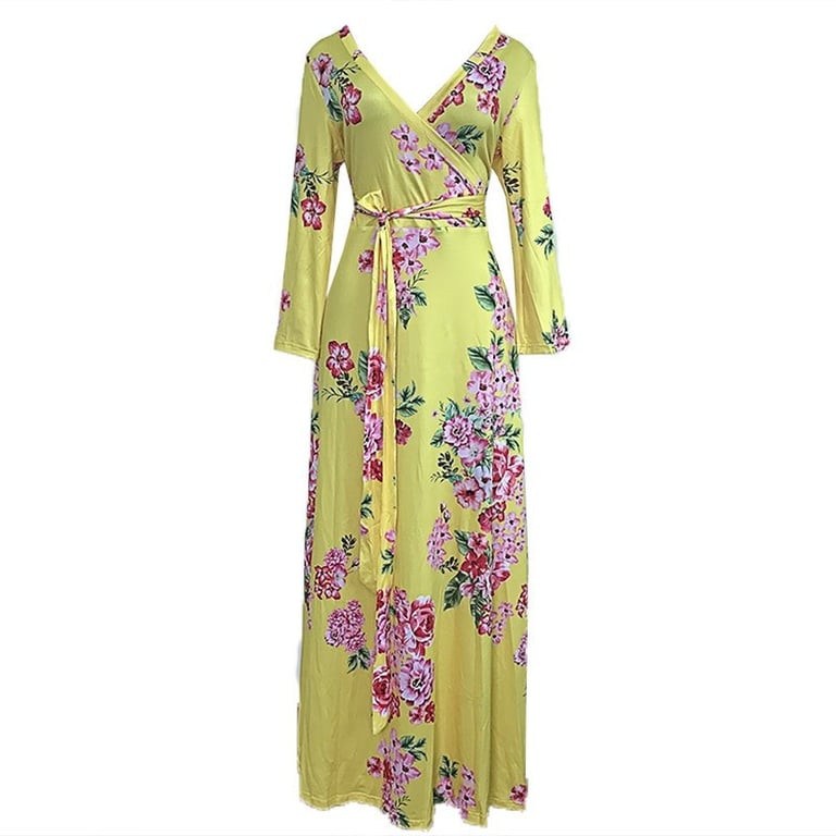 Magnifique robe longue pour femme avec un motif floral romantique.