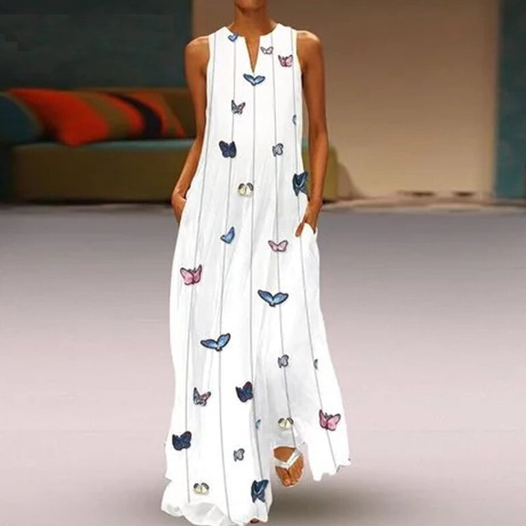 Robe mode avec des papillons. La robe est très confortable et chaque femme s'y sentira très bien.