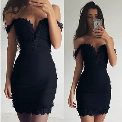 Robe noire de luxe à épaules dénudées