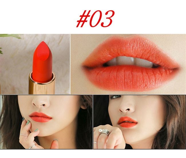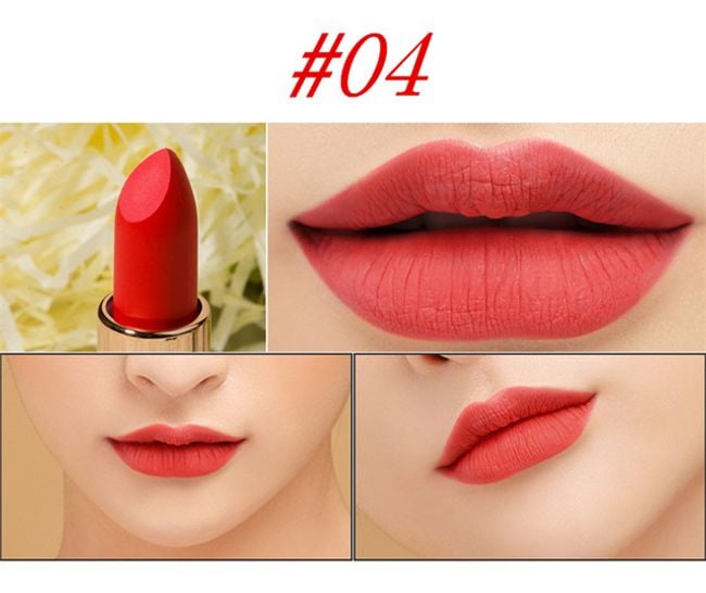 Le rouge à lèvres a une finition mate et dure longtemps.