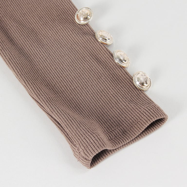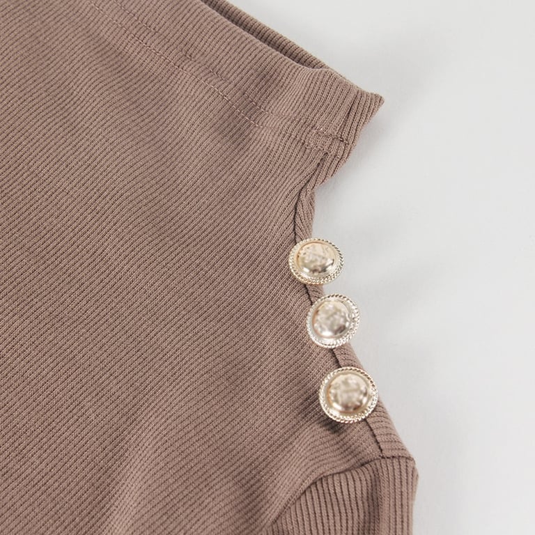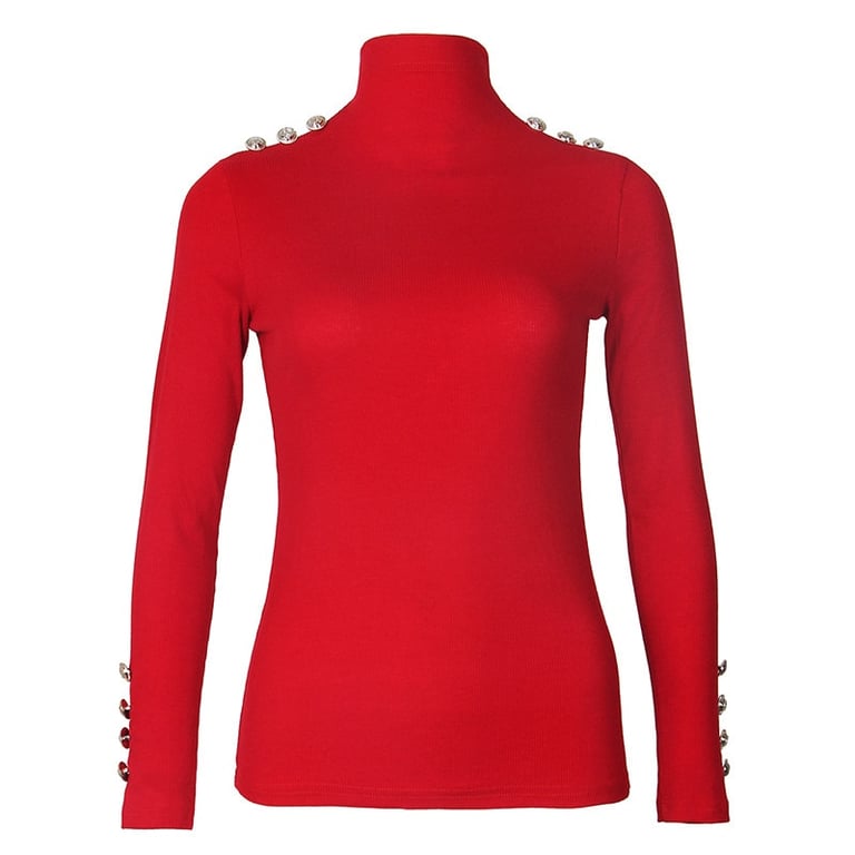 Un pull ajusté flatteur, qui a des boutons décoratifs sur les manches et les épaules.