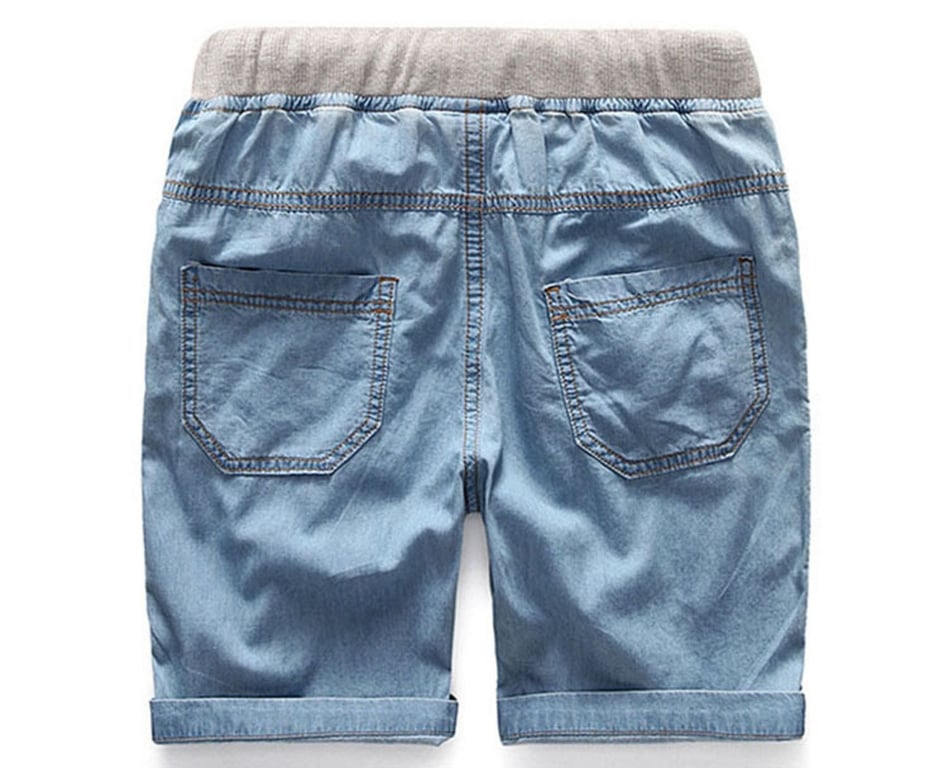Superbes shorts en jean qui ne se ferment pas avec un bouton ni une fermeture éclair, mais uniquement avec des lacets.