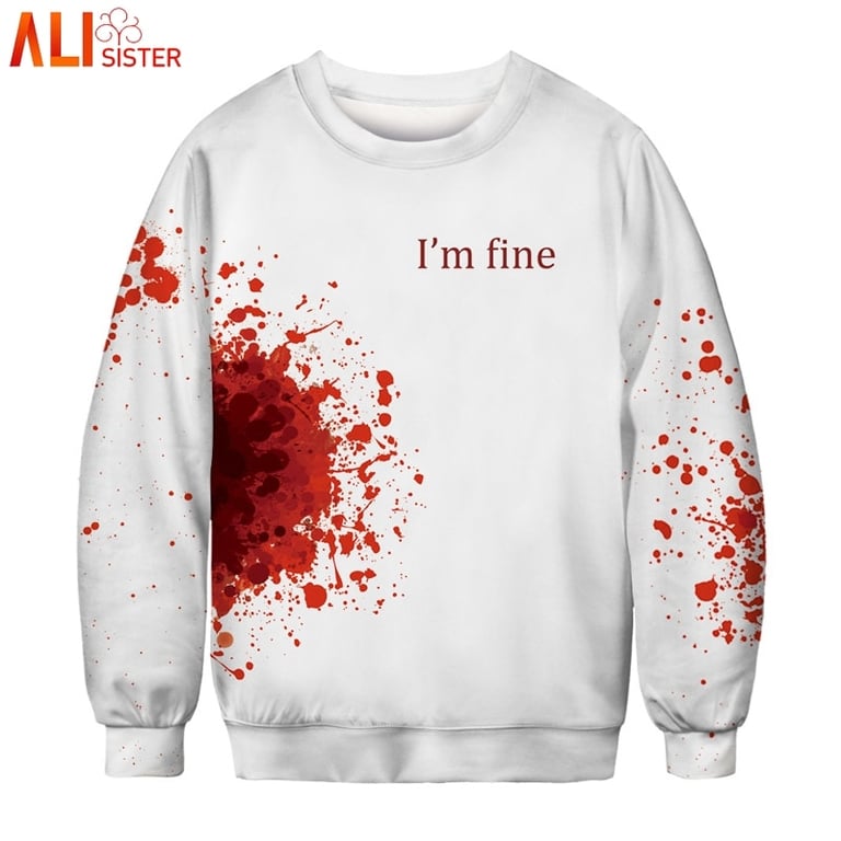 Pull en coton tendance dans un style horreur sanguinolent.