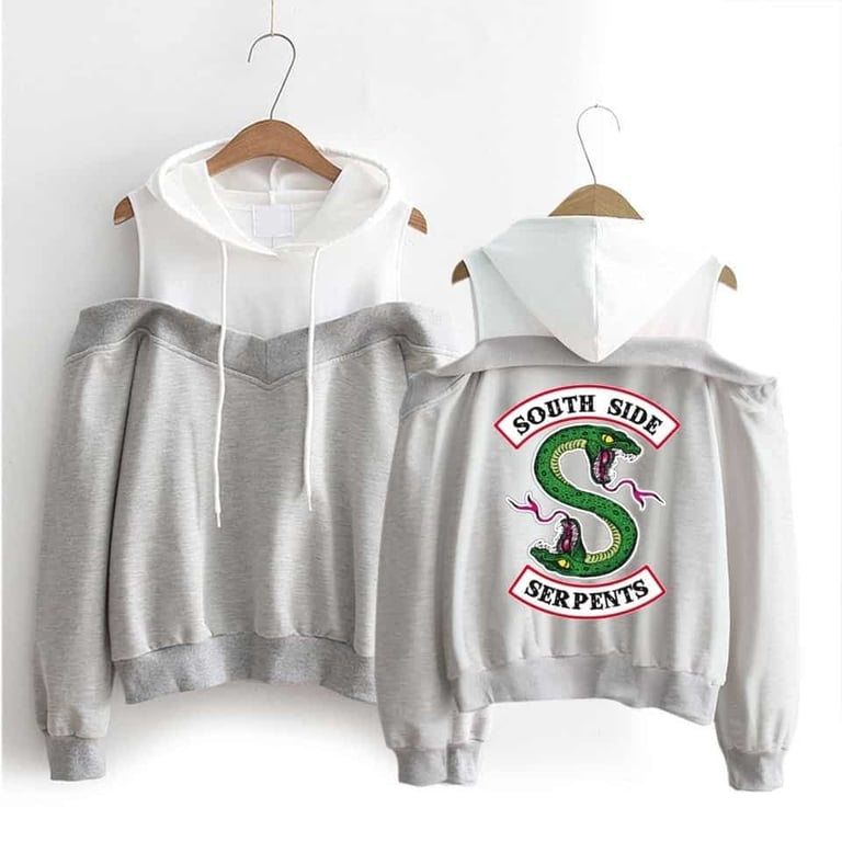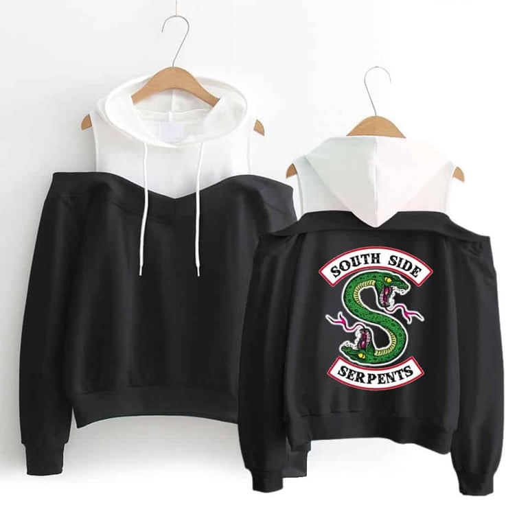 Pull bicolore avec motif serpent au dos.