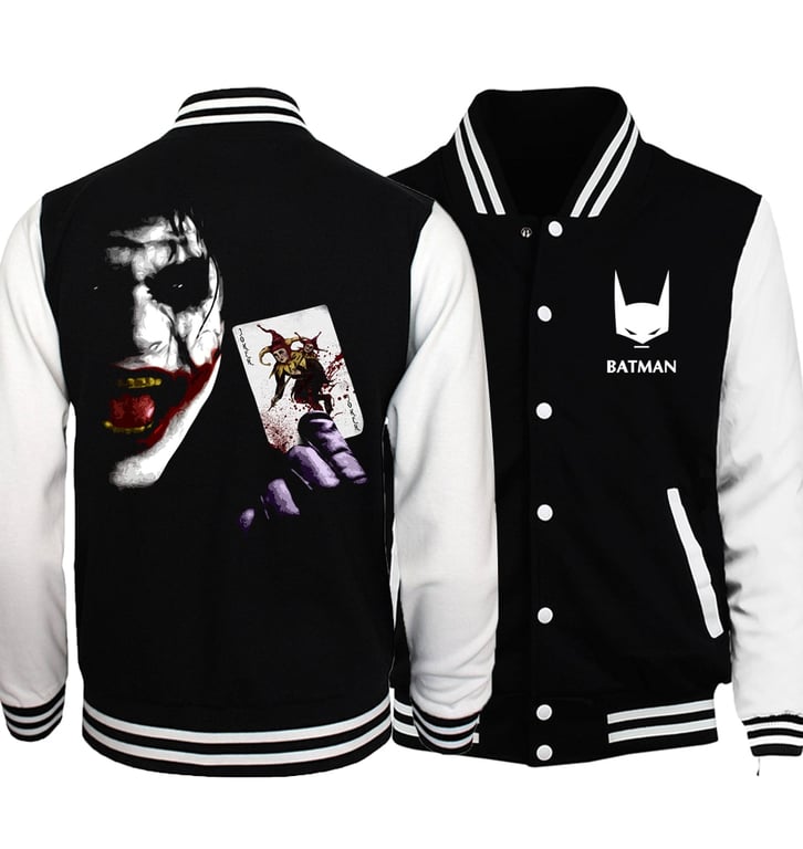 Un pull stylé avec le logo de Batman sur la poitrine et le Joker dans le dos. Les poches et toutes les autres ouvertures sont finies avec un ourlet.