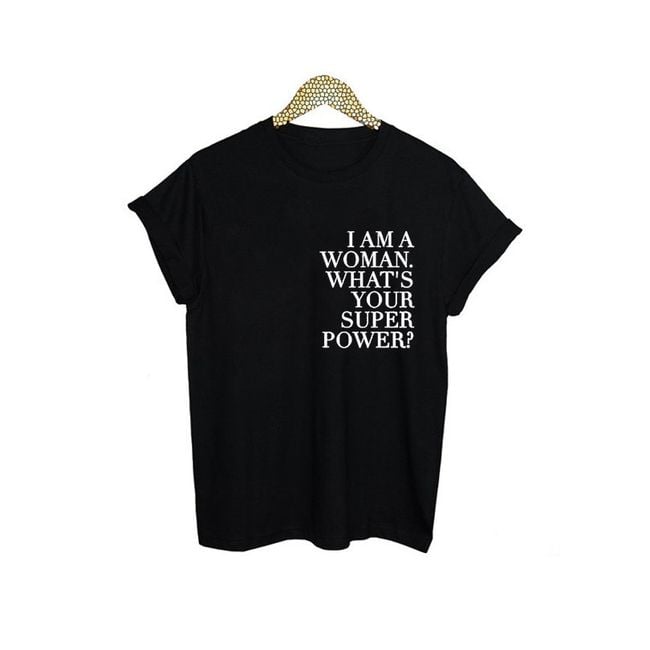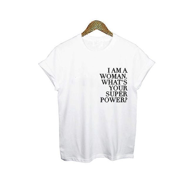 T-shirt pour femmes avec un message anglais explicite. Le tableau des tailles indique les mesures du produit, et non du corps.