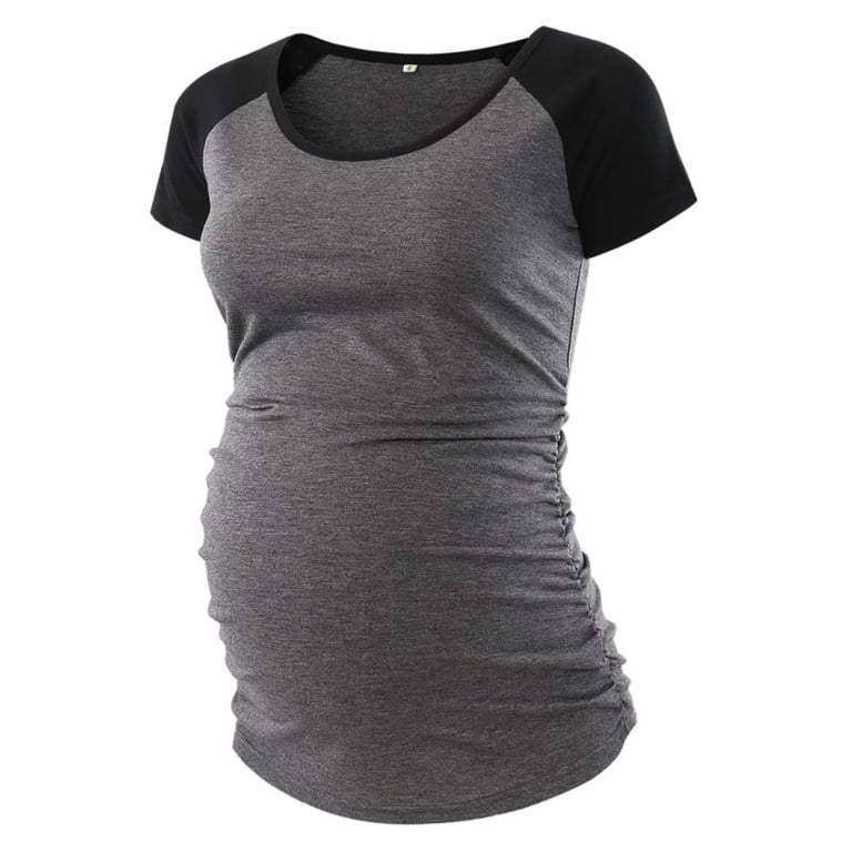 T-shirt de grossesse pour femmes à manches courtes. Encolure ronde, ample au niveau du ventre, matière agréable. Disponible en deux coloris.