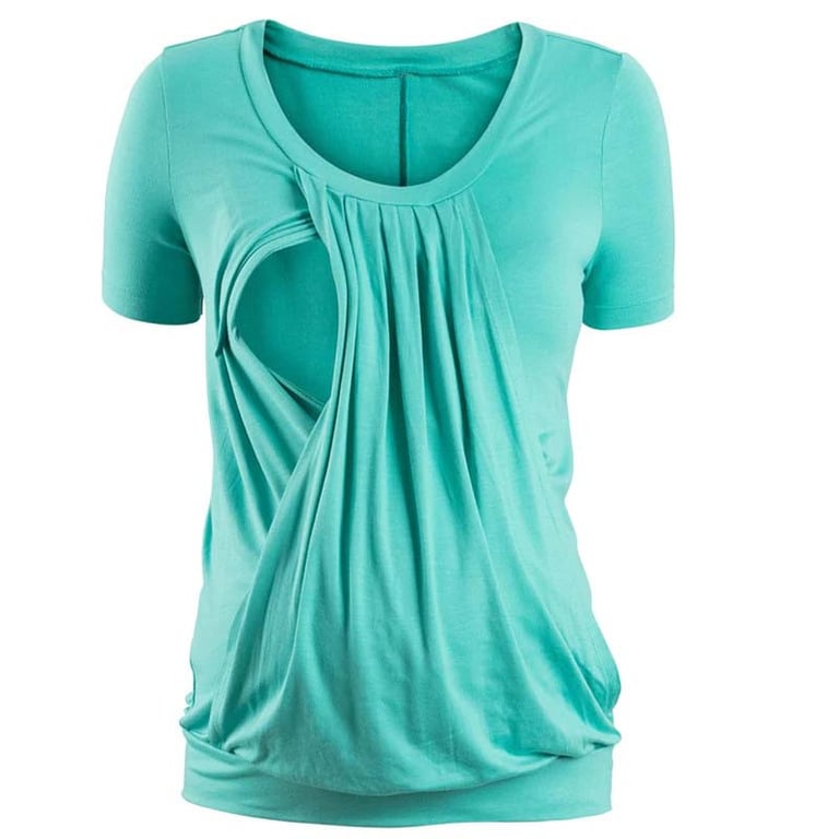 T-shirt que vous pouvez porter confortablement pendant la grossesse et qui sera également utile après la naissance du bébé, car il est adapté à l'allaitement. Il vous suffit de déplacer une partie du t-shirt et il n'est pas nécessaire de se déshabiller.