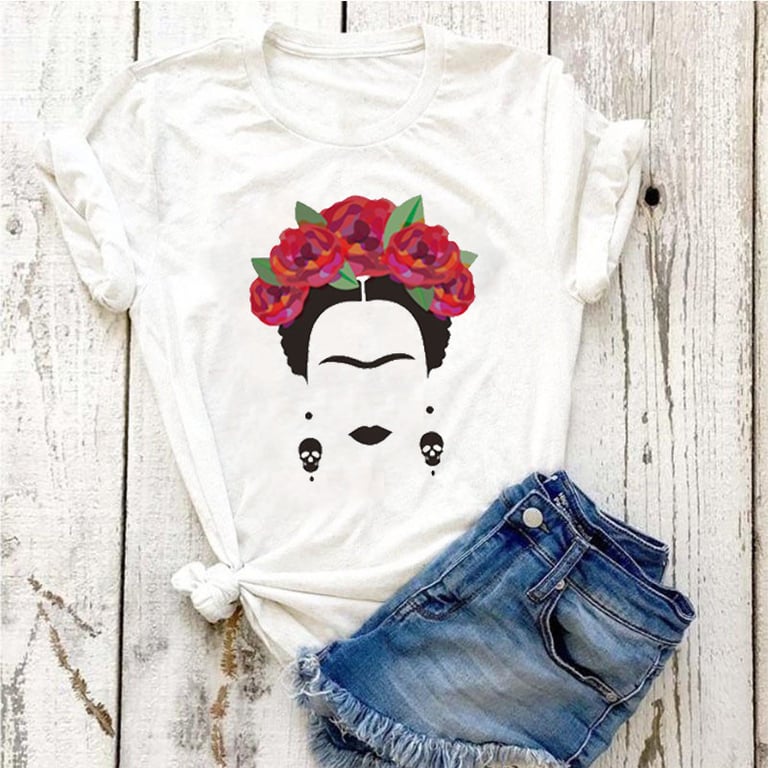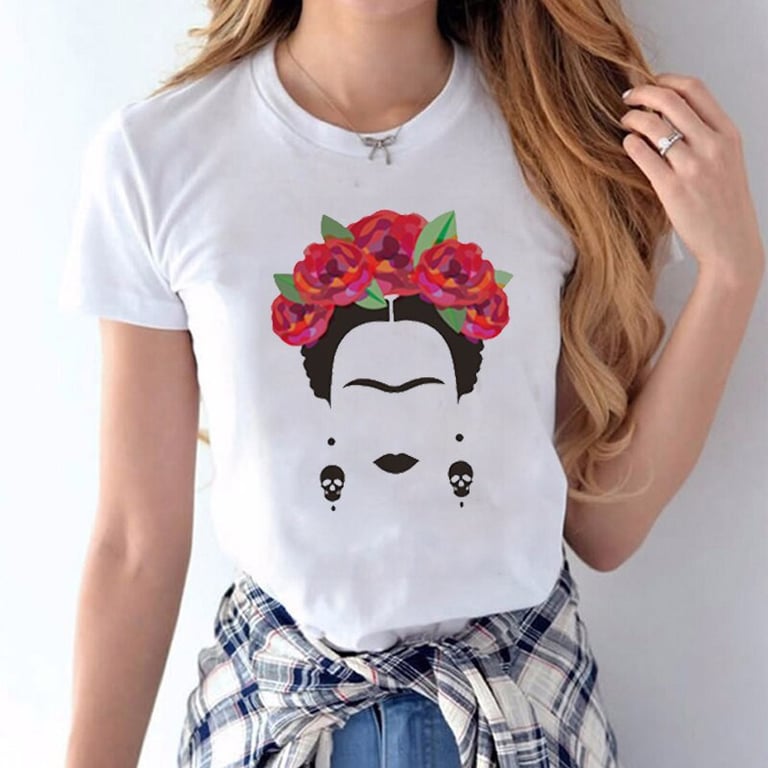 T-shirt pour femme avec impression colorée sur le devant. Coupe ample et confortable avec des manches courtes et un col rond.