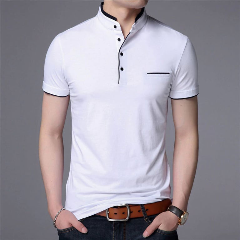T-shirt polo pour homme à manches courtes. Le t-shirt a un col avec un bouton. Coupe droite. Disponible en plusieurs coloris.