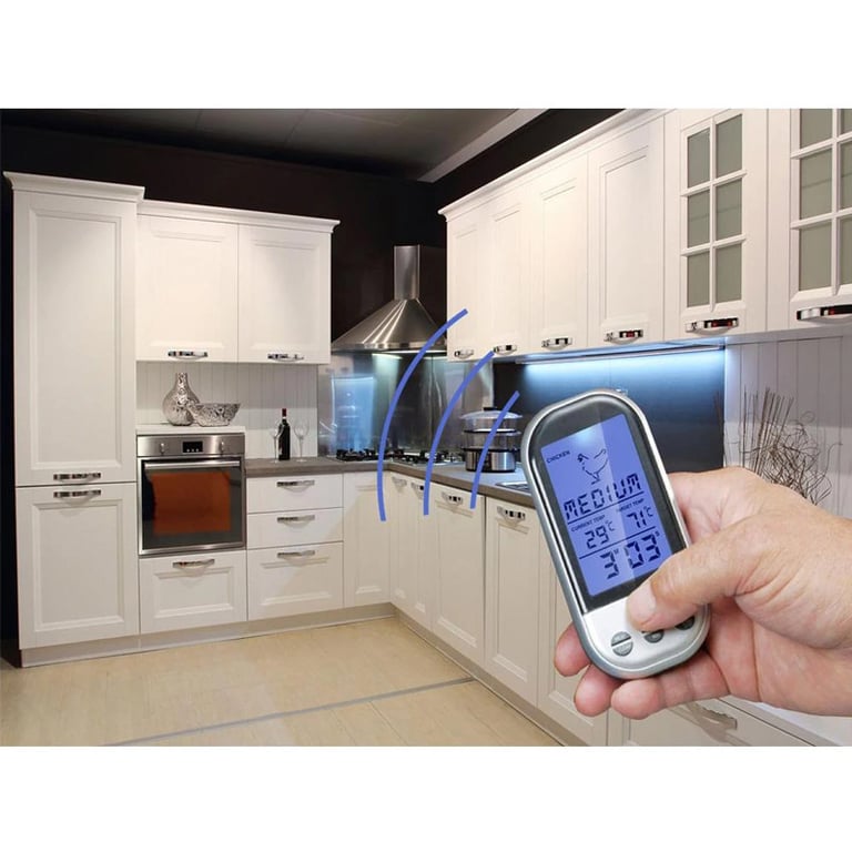 Thermomètre pratique qui transmet sans fil la température des aliments. Parmi les fonctions, il y a également un compte à rebours pratique, indiquant quand la viande atteindra le niveau de cuisson que vous avez choisi.