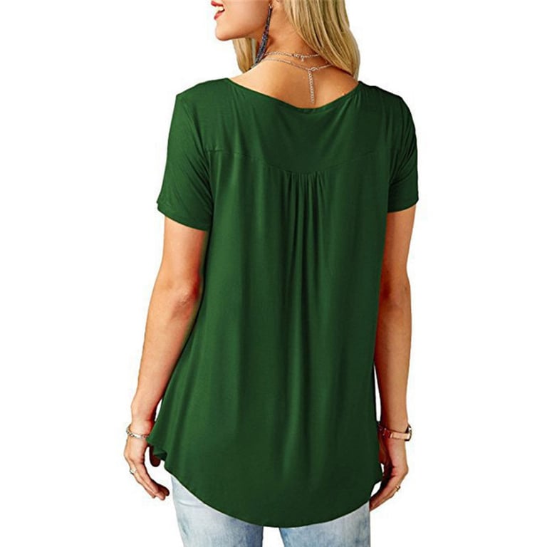 Top/t-shirt pour femme à coupe décontractée avec fronces. Le t-shirt a un col rond avec des boutons et des manches courtes. Matière agréable et aérée. Tailles grandes tailles. Disponible en plusieurs variantes de couleurs.
