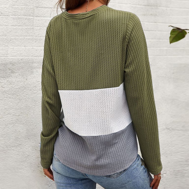 Top avec un lien attrayant, des boutons et un tissu à motifs. Choisissez parmi des couleurs agréables pour votre tenue d'automne.