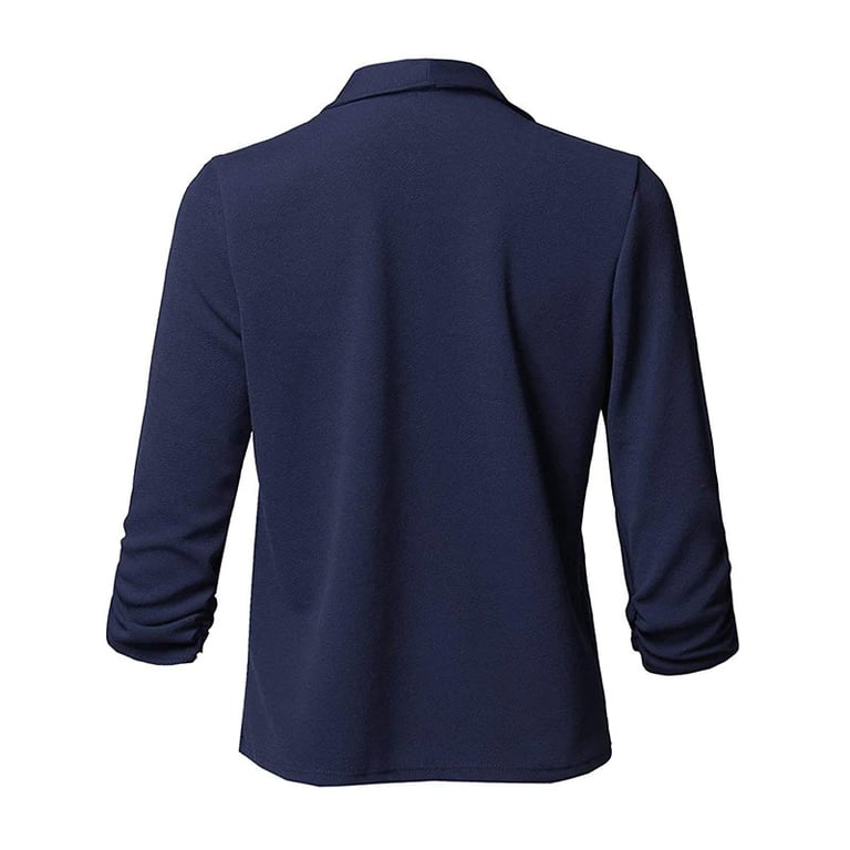 Veste pour femme avec des manches 3/4 et des revers larges. La veste est légère, en tissu fluide, sans fermeture, sans doublure et avec une surface douce. Disponible en plusieurs coloris.
