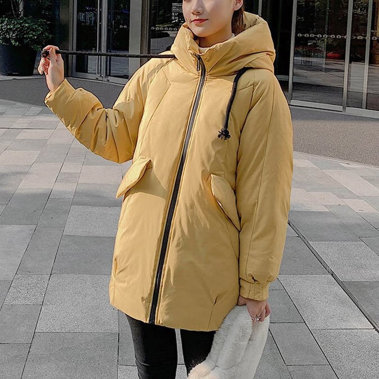 Veste d'hiver pour femme avec capuche et col haut. Coupe oversize plus longue avec fermeture éclair. Plusieurs variantes de couleurs.